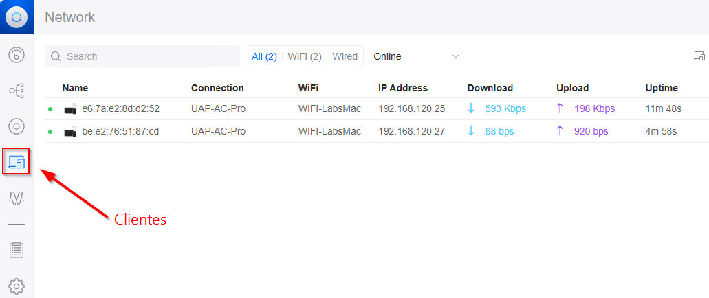 Si nos vamos a la pestaña de Clients, veremos los clientes conectados con su información.