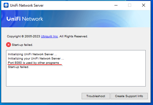 En el escenario contrario, recibiremos una alerta; por ejemplo, el software Unifi Network Application utiliza el puerto web 8080, y si existe otra aplicación o servicio que ya esté empleando dicho puerto, se nos informará al respecto.