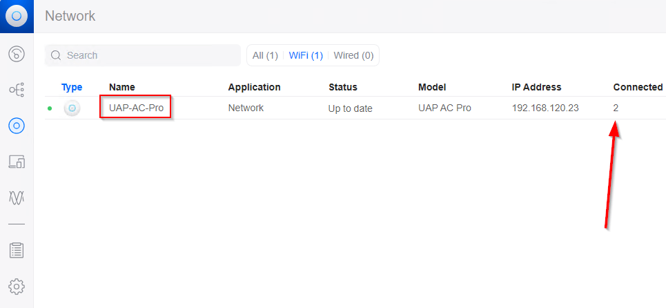 Si volvemos a la pestaña de Devices, podremos ver cuantos clientes finales están conectados a dicho punto de acceso.