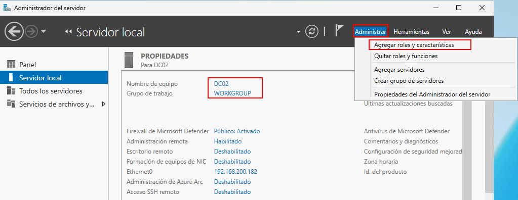 Antes de instalar el rol de Active Directory en este segundo servidor, es necesario realizar una serie de configuraciones previas, similares a las del primer controlador de dominio, aunque con algunas diferencias: