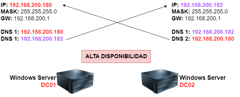 De esta forma, cada controlador de dominio utilizará su propio servicio DNS como principal y el del otro controlador como respaldo, garantizando alta disponibilidad y una correcta resolución de nombres.