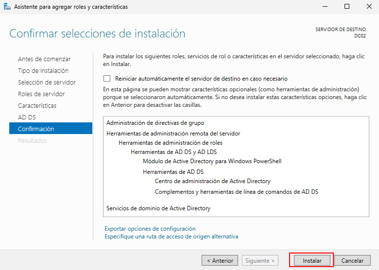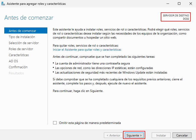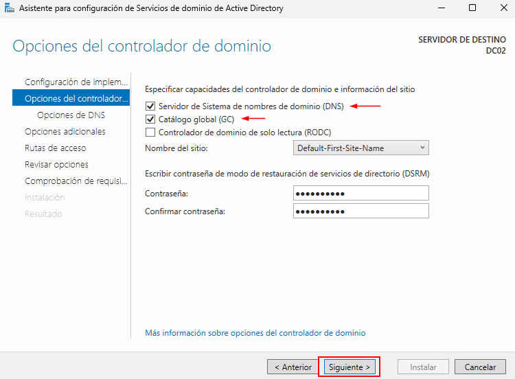 - RODC: No lo marcamos ya que no deseamos un DC en solo lectura.