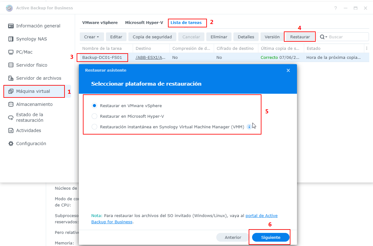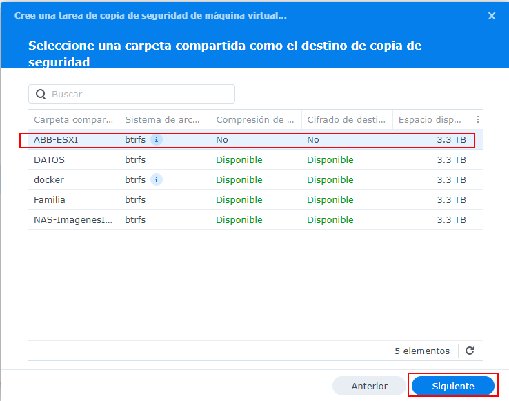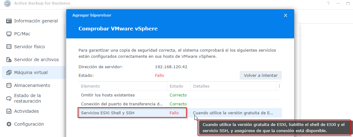 Configurar copia de seguridad de VMware ESXi en un NAS Synology