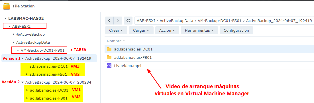 Si abrimos File Station y localizamos nuestra carpeta de destino de las copias, tiene que tener una estructura como la siguiente: