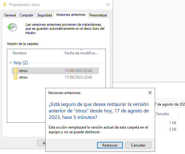Recuperar archivos o carpetas con las instántaneas de Windows