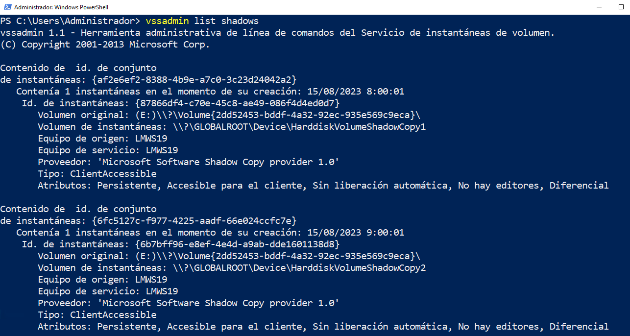 No explicaré mucho sobre esto ya que quiero preparar un post sobre el comando vssadmin en Windows.