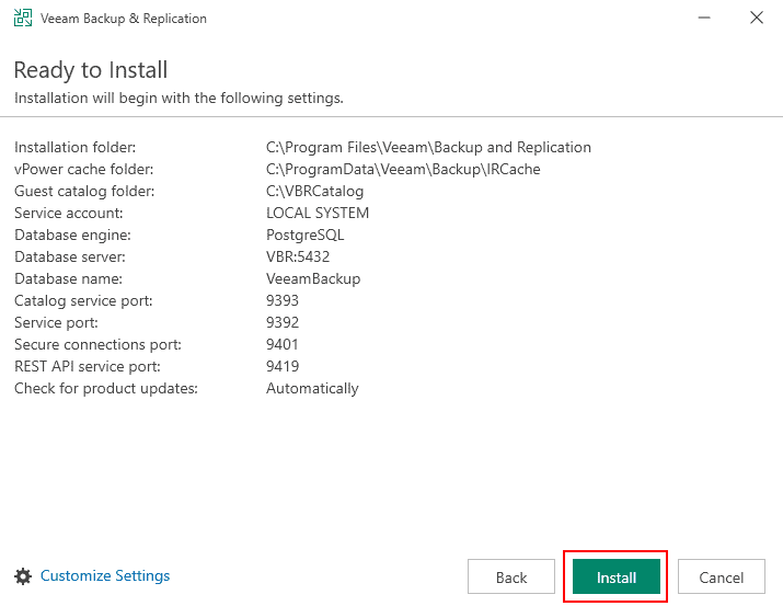Clicamos en Install para comenzar la instalación de Veeam Backup & Replication.