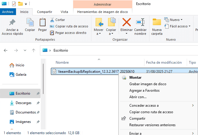Primero nos descargamos la ISO desde la página de Veeam y lo montamos para ejecutar el instalador.